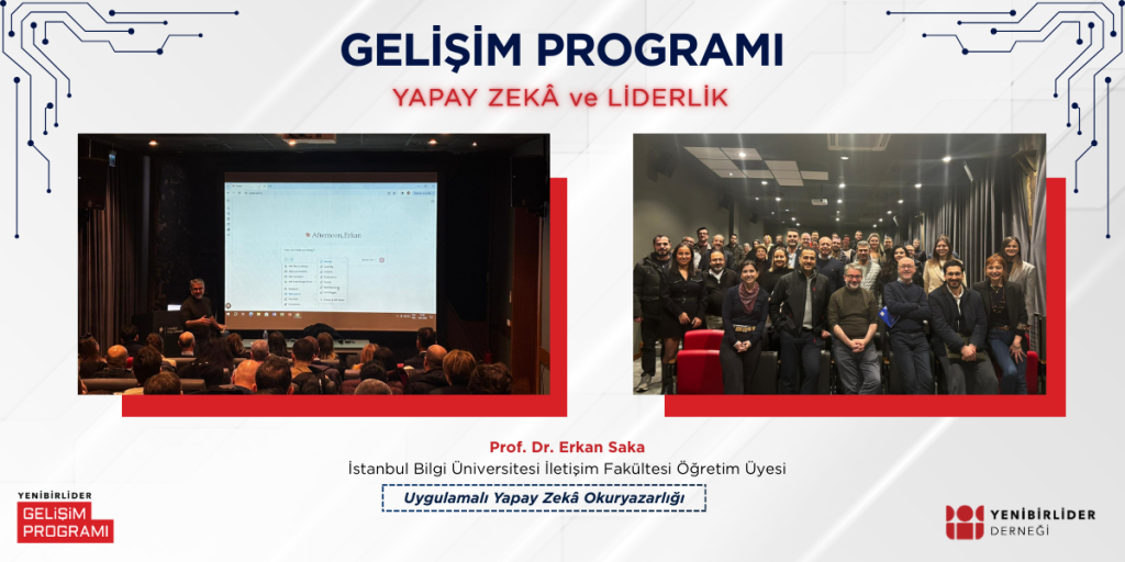 27. Dönem Gelişim Programı kapsamında gerçekleştirilen “Uygulamalı Yapay Zekâ Okuryazarlığı” başlıklı oturumda, İstanbul Bilgi Üniversitesi İletişim Fakültesi öğretim üyesi Prof. Dr. Erkan Saka, yapay zekânın günlük iş yapış biçimlerine ve iletişim pratiklerine nasıl entegre edilebileceğini ele aldı.